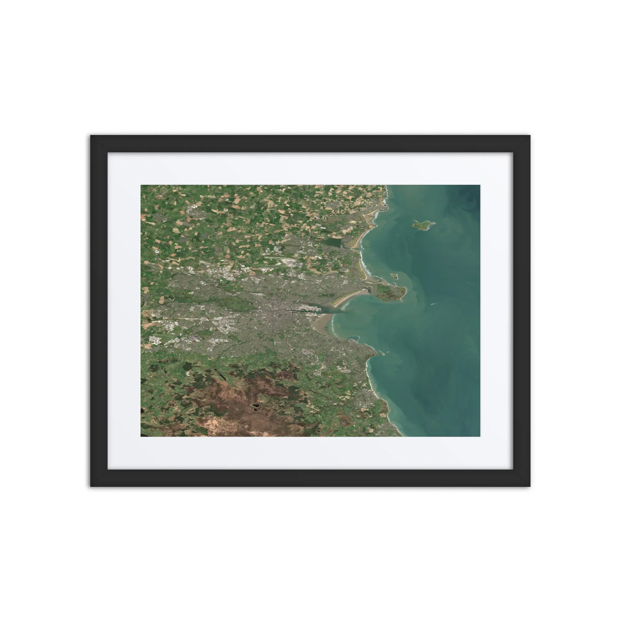 Dublin, Ireland from Space | Dublin Satellite Image & Map Art | 20″ × 16″ Framed Print